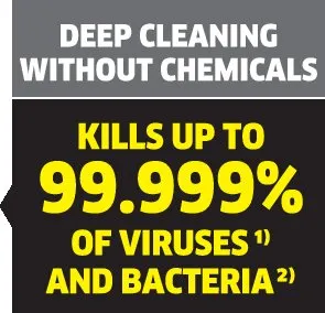 ²⁾ Цэвэрлэх гадаргуутай шууд харьцуулан хамгийн их уурын тохиргоогоор, секундэд 30 см хурдтай цэвэрлэх үед, ахуйн нийтлэг гөлгөр, хатуу гадаргуу дээрх ахуйн нийтлэг бактерийн 99.99%-ийг устгана (туршилтын нян: Enterococcus hirae).
